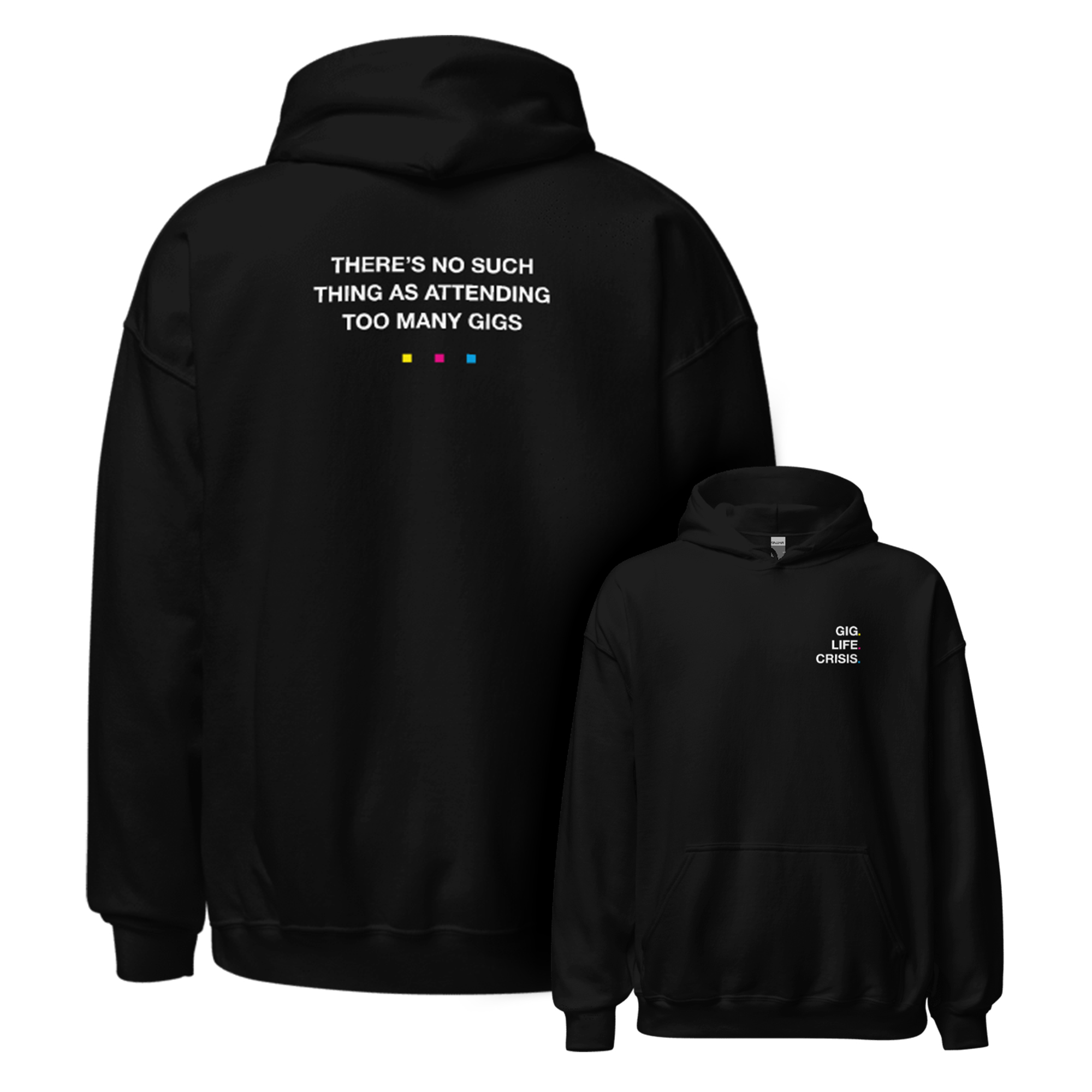 Get gig-ready with the ultimate Gig Life Crisis Hoodie, designed for music lovers who live for concerts, festivals, and nights in the mosh pit. Featuring the iconic Gig Life Crisis logo on the front and a bold slogan on the back, this hoodie lets you express your love for live music with style and comfort. With slogans like: